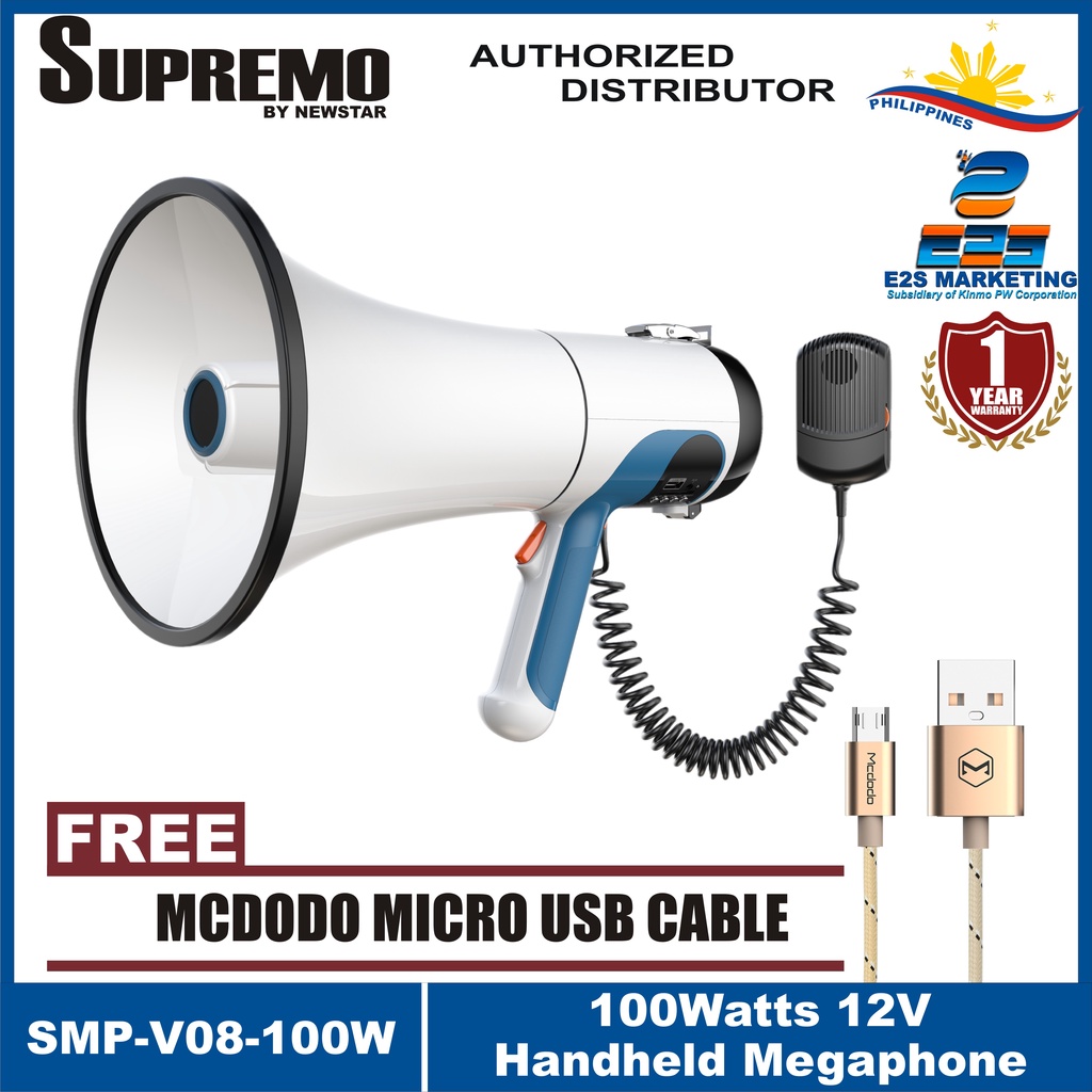 Supremo High Power Handheld Megaphone with Microphone 12V 100Watts SMP